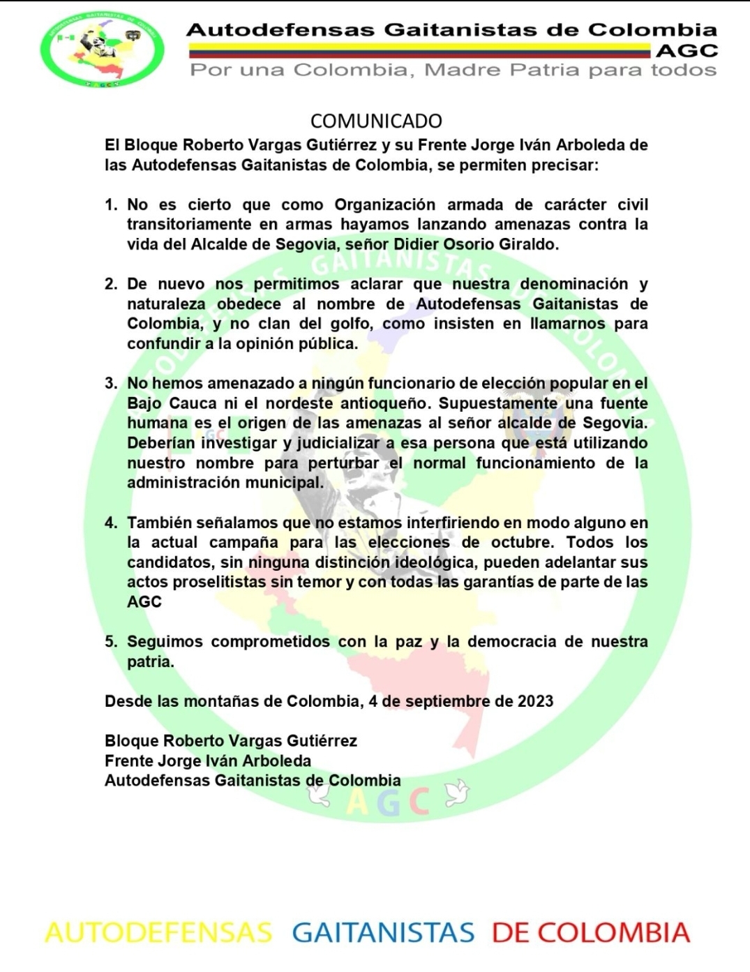 Autodefensas Gaitanistas de Colombia Condenan el Secuestro del Padre del Futbolista Luis Díaz por parte del ELN En Actualidad Política 2 years ago